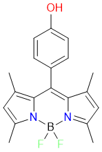 8-(4-Hydroxyphenyl)-1,3,5,7-tetramethyl BODIPY is a BODIPY-based fluorescent dye with high quantum yield and good photostability. It emits bright fluorescence upon excitation at specific wavelengths, making it promising for applications in bioimaging, fluorescent labeling, and sensing. Excitation/Emission (nm) = 503/512.