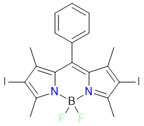 Biological Activity: 8-Phenyl-2,6-diiodo-1,3,5,7-tetramethyl BODIPY is a boron-dipyrromethene (BODIPY) compound. Due to its unique structure, it exhibits excellent fluorescence performance, emitting strong fluorescence upon excitation at specific wavelengths. It is applicable in bioimaging, fluorescent labeling, sensors, and related fields. Reference: BODIPY Derivatives for Photodynamic Therapy: Influence of Configuration versus Heavy Atom Effect | ACS Appl Mater Interfaces. | 2017 Sep 27 | PMID: 28875695