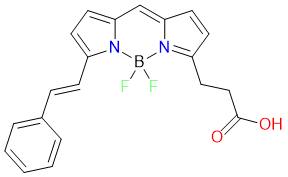 BODIPY 564/570 carboxylic acid features a boron-dipyrromethene (BODIPY) core and exhibits defined absorption and emission spectra within a specific wavelength range, emitting fluorescence in the orange-red region. The carboxylic acid group enables chemical conjugation to biomolecules or cellular structures for labeling and tracking. Excitation/Emission (nm) = 564/570.