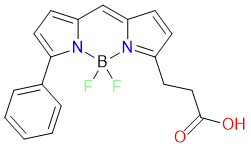 Biological Activity: BODIPY R6G carboxylic acid exhibits high fluorescence quantum yield and is soluble in solvents such as DMF, DMSO, ethanol, methanol, and dichloromethane. In the presence of activators, it reacts with primary amine groups to form stable amide bonds for subsequent labeling. Excitation/Emission (nm) = 530/548. Reference: Targeted optical imaging of cancer cells using lectin-binding BODIPY conjugated avidin | Biochem Biophys Res Commun. | 2006 Sep 29 | PMID: 16904640