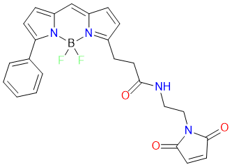 BODIPY R6G maleimide exhibits high fluorescence quantum yield and photostability, making it suitable for biomolecule labeling and cell imaging. The maleimide group specifically reacts with thiol-containing biomolecules (e.g., cysteine residues in proteins) to enable fluorescent labeling for subsequent detection and analysis. Excitation/Emission (nm) = 555/585.