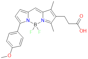 Biological Activity: BODIPY TMR carboxylic acid contains a free carboxylic acid group and serves as a non-reactive control in side-by-side experiments with other reactive BODIPY TMR derivatives. It can also be used in Steglich esterification reactions. It is commonly employed in microscopy and fluorescence polarization assays. Excitation/Emission (nm) = 545/570. Reference: Single-molecule photoreaction quantitation through intraparticle-surface energy transfer (i-SET) spectroscopy | Nat Commun. | 2020 Aug 27 | PMID: 32855425