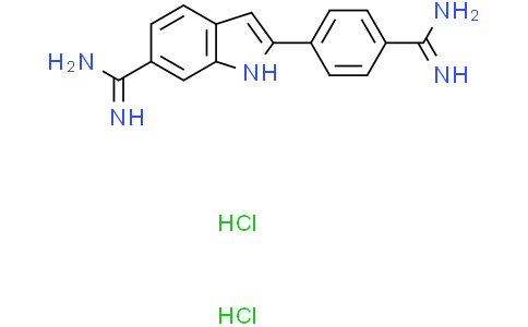 Biological Activity: DAPI is a fluorescent dye that binds strongly to double-stranded DNA, preferentially at A/T-rich regions in the minor groove (one DAPI molecule occupies approximately three base pairs). Upon binding, its fluorescence intensity increases ~20-fold, enabling DNA quantification. DAPI is cell-permeable and commonly used for staining both live and fixed cells. Excitation/Emission (nm) = 356/451. References: 1. Integrated proteogenomic characterization across major histological types of pituitary neuroendocrine tumors | Cell Res. | 2022 Dec | PMID: 36307579 2. Feedforward inhibition of stress by brainstem neuropeptide Y neurons | Nat Commun. | 2024 Sep 1 | PMID: 39217143