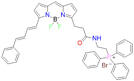 Biological Activity: MitoPerOx is a ratiometric fluorescent probe for lipid peroxidation. It is rapidly taken up by mitochondria within cells and can be used to assess changes in mitochondrial lipid peroxidation. Excitation/Emission (nm) = 520/590. References: 1. A ratiometric fluorescent probe for assessing mitochondrial phospholipid peroxidation within living cells | Free Radic Biol Med. | 2012 Aug 1 | PMID: 22659314 2. Rooted in therapeutics: comprehensive analyses of Cannabis sativa root extracts reveals potent antioxidant, anti-inflammatory, and bactericidal properties | Front Pharmacol. | 2024 Sep 16 | PMID: 39351095