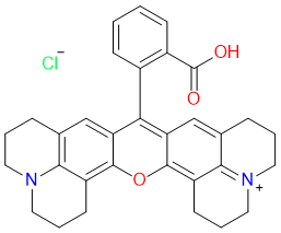 Rhodamine 101 chloride is widely used in biochemical and molecular biology research as a fluorescent label in applications such as fluorescence microscopy, flow cytometry, fluorescence correlation spectroscopy, and ELISA. In the lab, it is often employed as a fluorescent reporter for membrane-permeable biological probes. Ex/Em (nm) = 565/595.